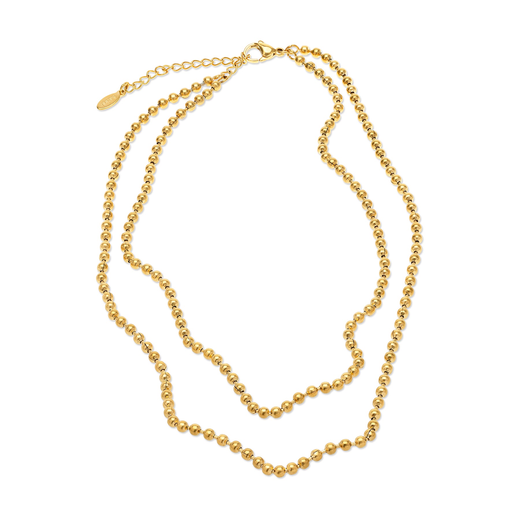 Modern design med Sansa duo-halsband. Detta delikata halsband i rostfritt stål har två eleganta kulkedjor i olika längder. Det är vattentåligt och missfärgningsfritt för en hållbar stil.