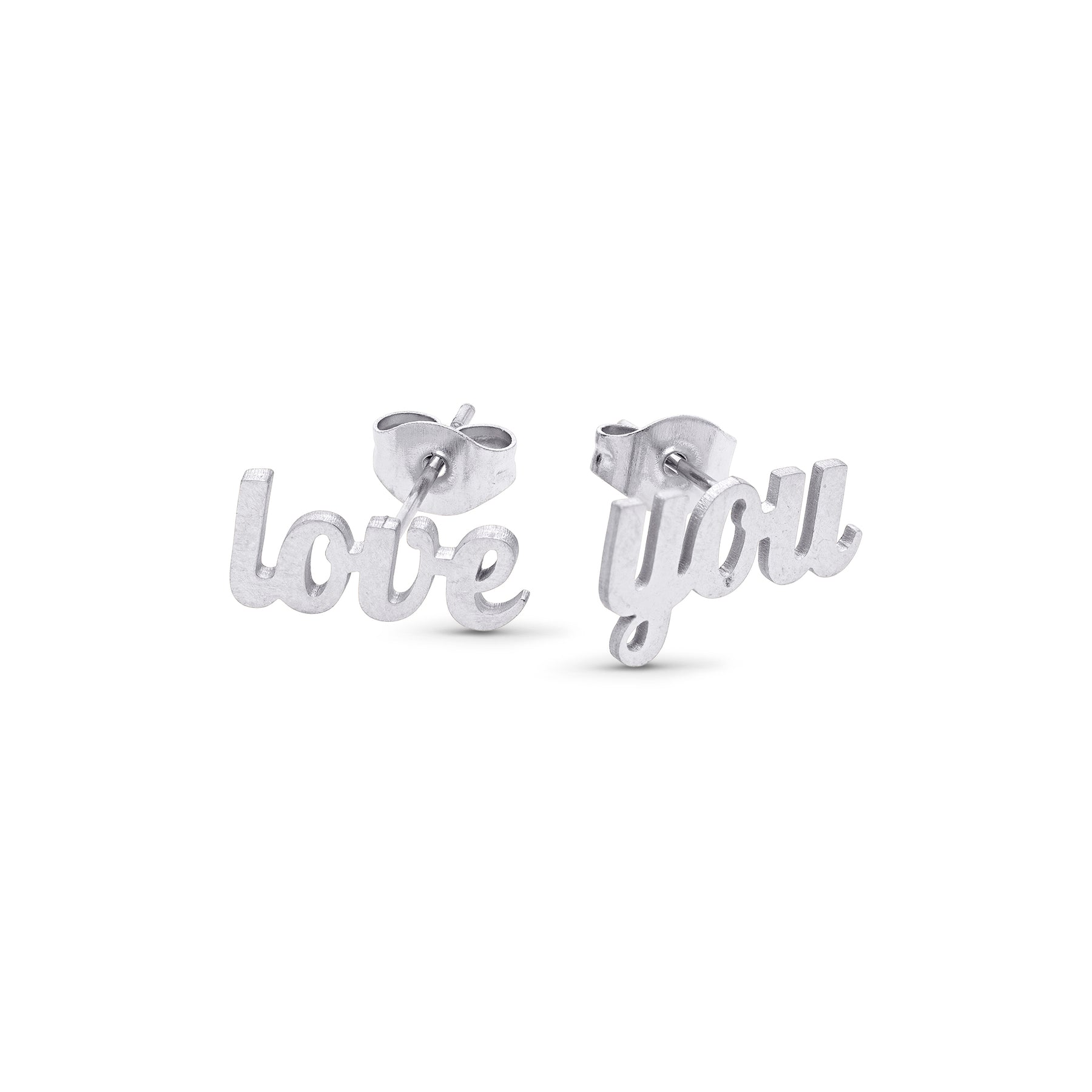 Uttryck dig med dessa "Love You" stiftörhängen. Med den charmiga inskriptionen "Love You" är dessa studs örhängen i rostfritt stål vattentåliga och oxiderar inte. Finns i silver & guld för att passa din stil och dina behov.