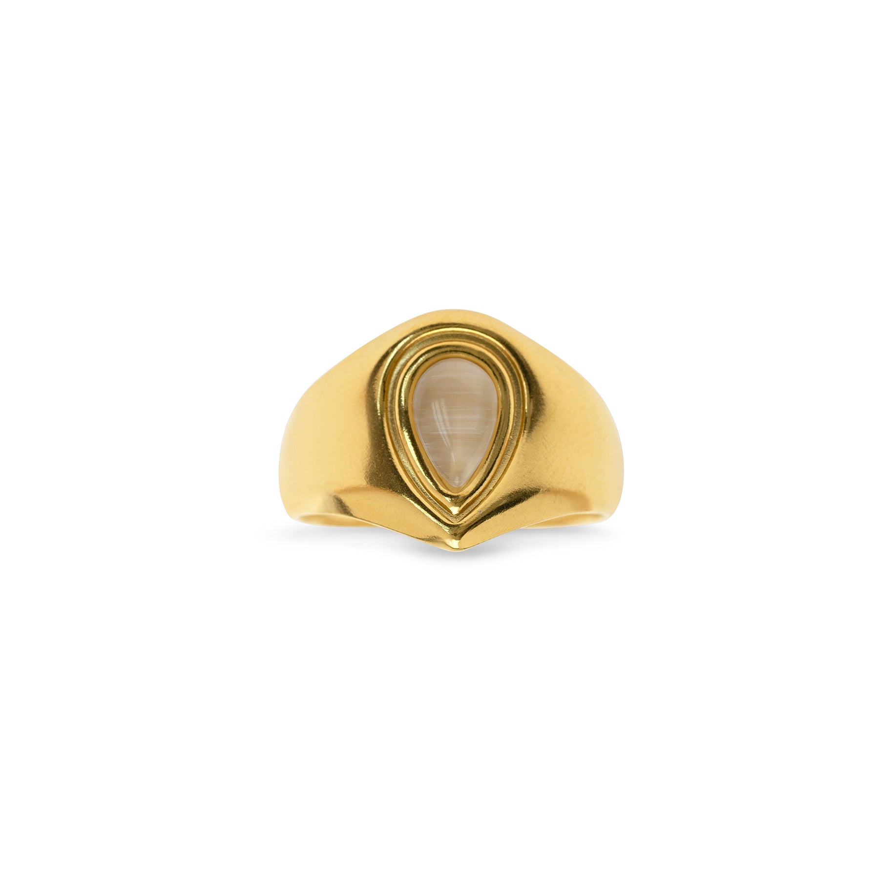 Naturlig elegans med denna stenring. Denna justerbara ring i rostfritt stål har en slät sten och är både vattentålig och missfärgningsfri för vardagligt bruk. Pläterad i 18k guld för en lyxig känsla.