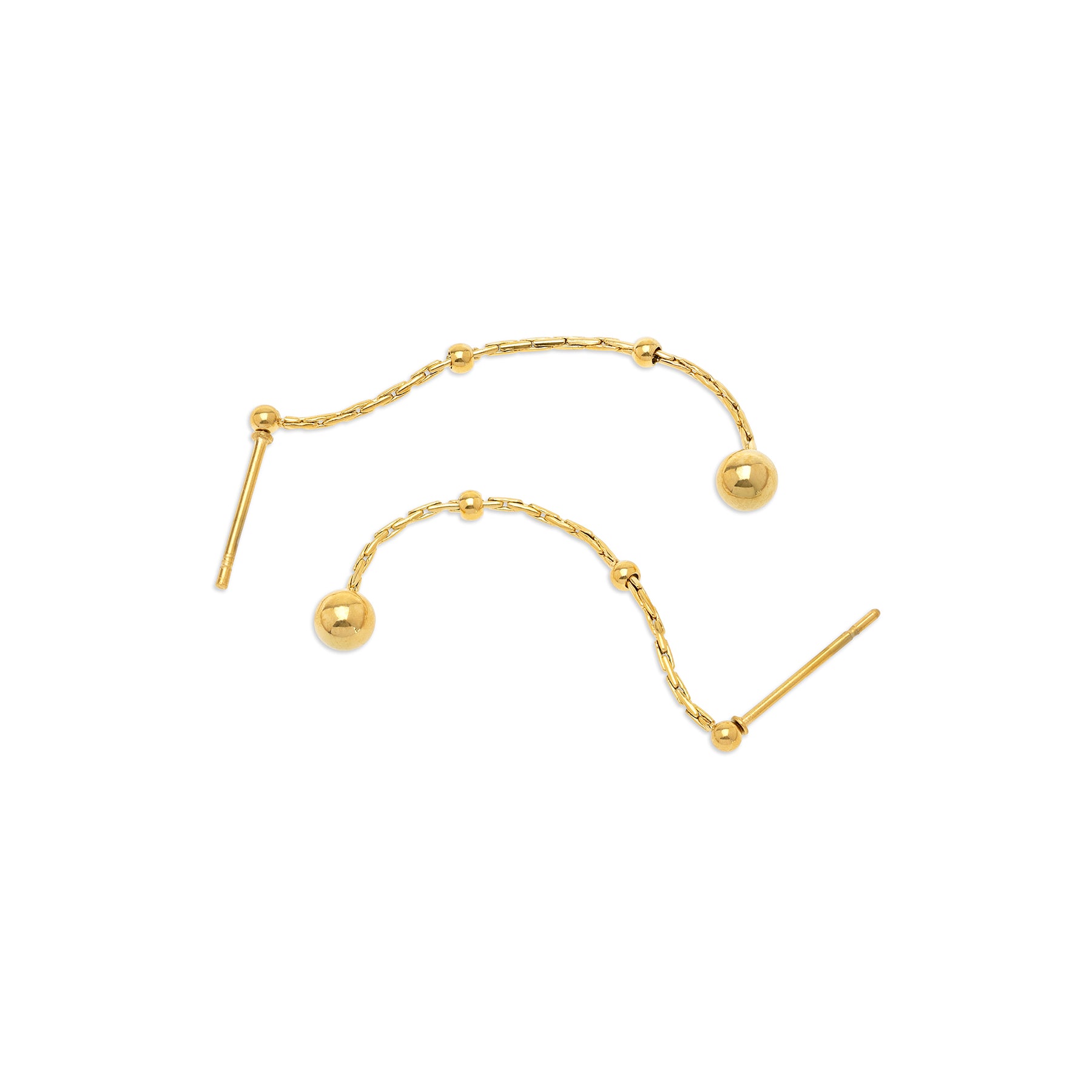 Modern minimalism med en twist! Dessa vattentåliga studs örhängen i rostfritt stål har en elegant kedja med nätta kulor. Välj mellan silver och guld!