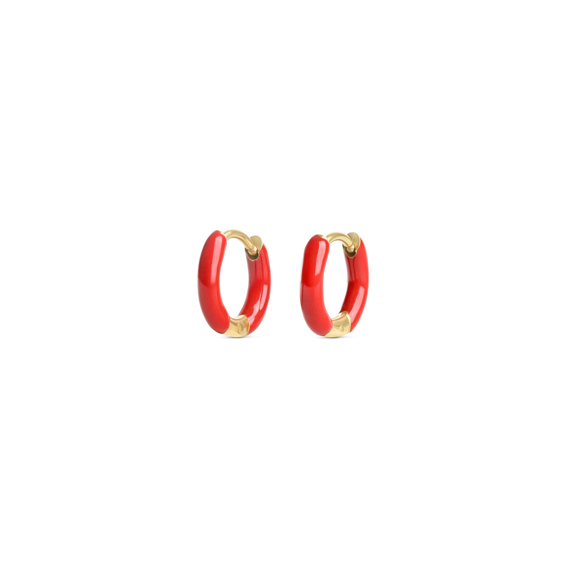 Klassiska huggies med en twist. Våra emaljerade huggie hoops i vattentåligt stål är gjorda för att sitta på 24/7. Oavsett om du väljer soft pink, clean white, electric blue eller baddie red, så tål de både träningen & duschen.